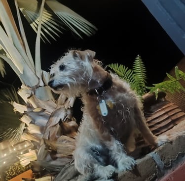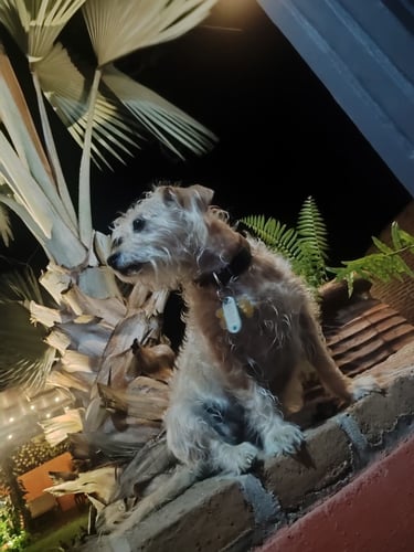 Salgo al patio de mi casa. El sol arde sobre mi cuerpo y la luz deslumbra mis ojos, pero me acerco a la reja. Veo pasar monstruos; monstruos de metal que avanzan rápidamente en una dirección y otra; monstruos de cuatro patas con expresiones que me parecen feroces, del doble, triple o incluso varias veces mi tamaño; monstruos de dos patas, altísimos… estos son los que más miedo me dan. Les grito a todo pulmón que no se atrevan a entrar, que sigan su camino, que aquí no son bienvenidos. Luego entro de nuevo a mi casa, donde tengo mi plato de agua, de croquetas y donde mis papás me rascan detrás de las orejas. Estos sí que son unos buenos monstruos.